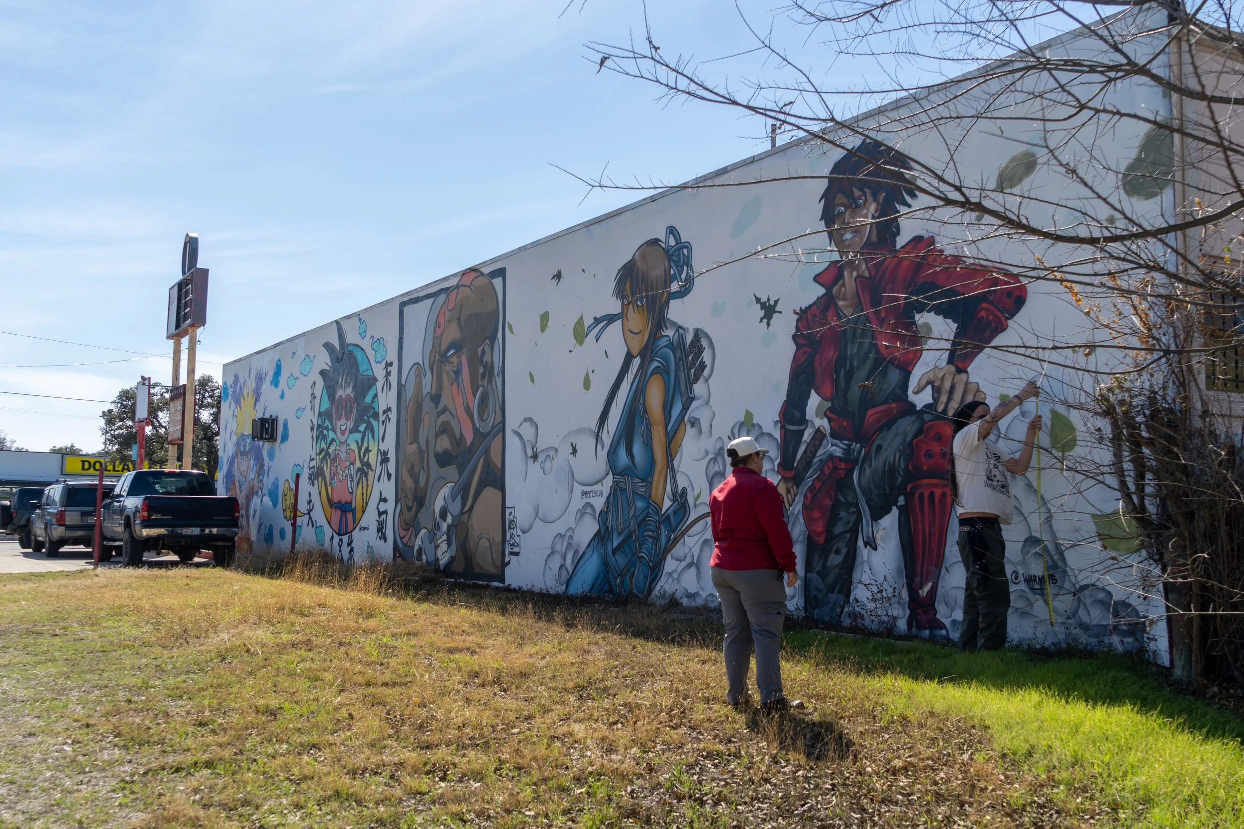 The mural production will be led by San Antonio muralist Nik "Soup" Soupe — 25+ years of experience, lift certified, and clear coat expertise for long-term vibrancy.