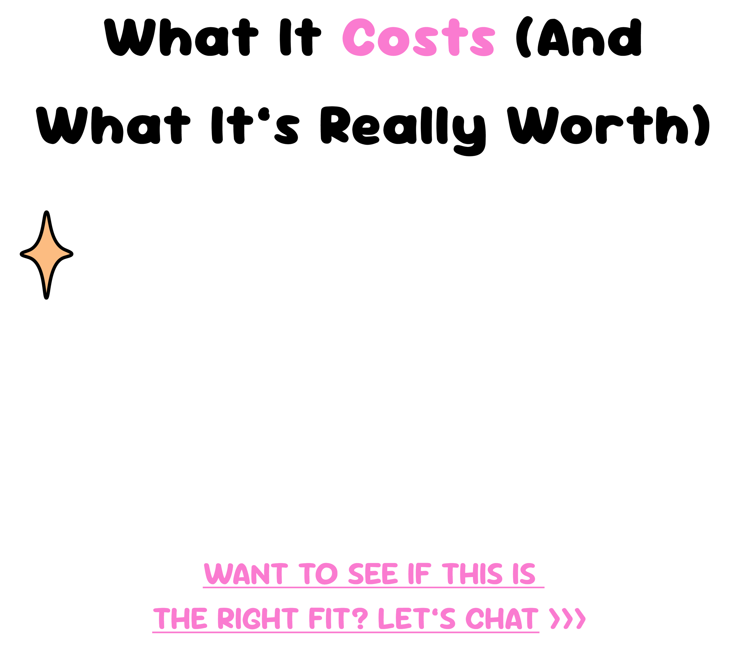 You’ll get a checklist for a foundational launch strategy, plus a short support window after launch in case something breaks or feels confusing. I want you to feel confident running your site — even after we hit “publish.”
